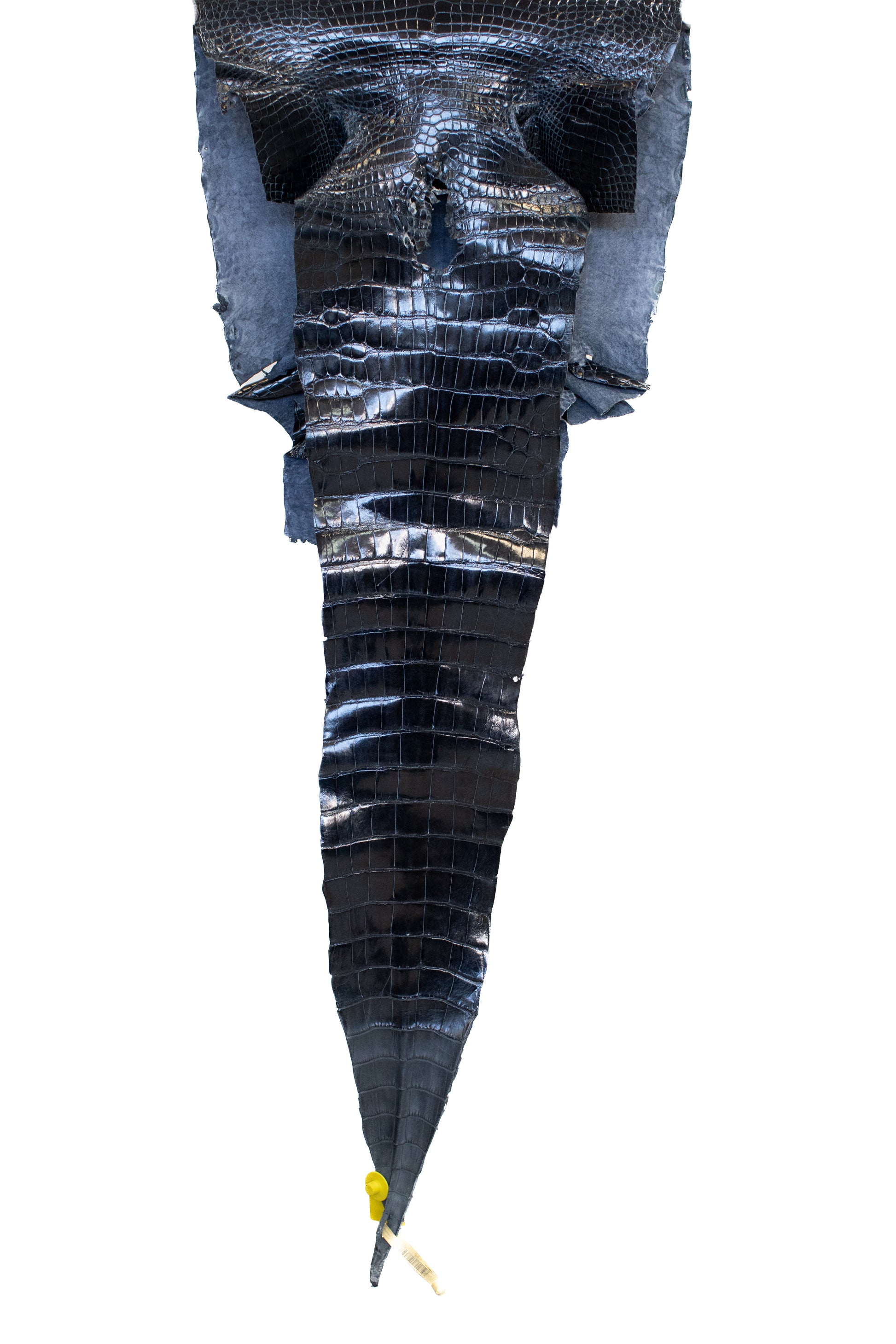 45 cm Grade 1/2 Navy Blue Glazed Wild American Alligator Leather - Tag: LA16-0016558